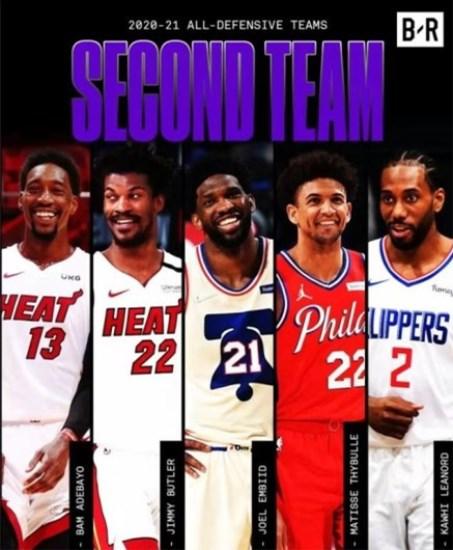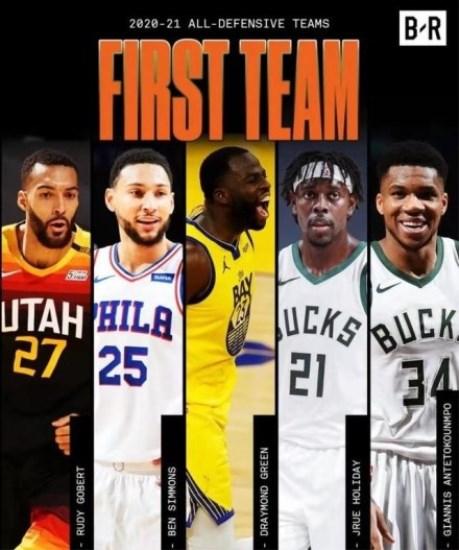 入选最佳防守第一阵容的还有获得80张第一阵容选票、16张第二阵容选票的格林,获得65张第一阵容选票、27张第二阵容选票的霍乐迪,获得43张第一阵容选票,49张第二阵容选票的“字母哥”阿德托昆博。进入本赛季最佳防守二阵的5名球员分别是阿德巴约、巴特勒、恩比德、莱昂纳德和塞布尔。