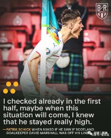 欧洲杯D组第1轮,捷克2-0战胜苏格兰,希克上演了梅开二度,他不仅头球破门,而且他上演了世界级的半场吊射,这粒技惊四座的吊射创造了历史!