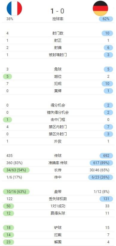 2.《[直播吧]全场数据:德国控球率62%射门10-4占优,法国2球被吹越位》仅供读者参考,本网站未对该内容进行证实,对其原创性、真实性、完整性、及时性不作任何保证。