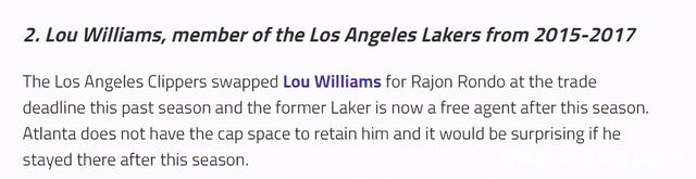 湖人很需要一位能在替补席扮演重要火力点的球员。路威能组织进攻,也是得分高手,如果加盟湖人,可以大大减轻詹眉组合压力。