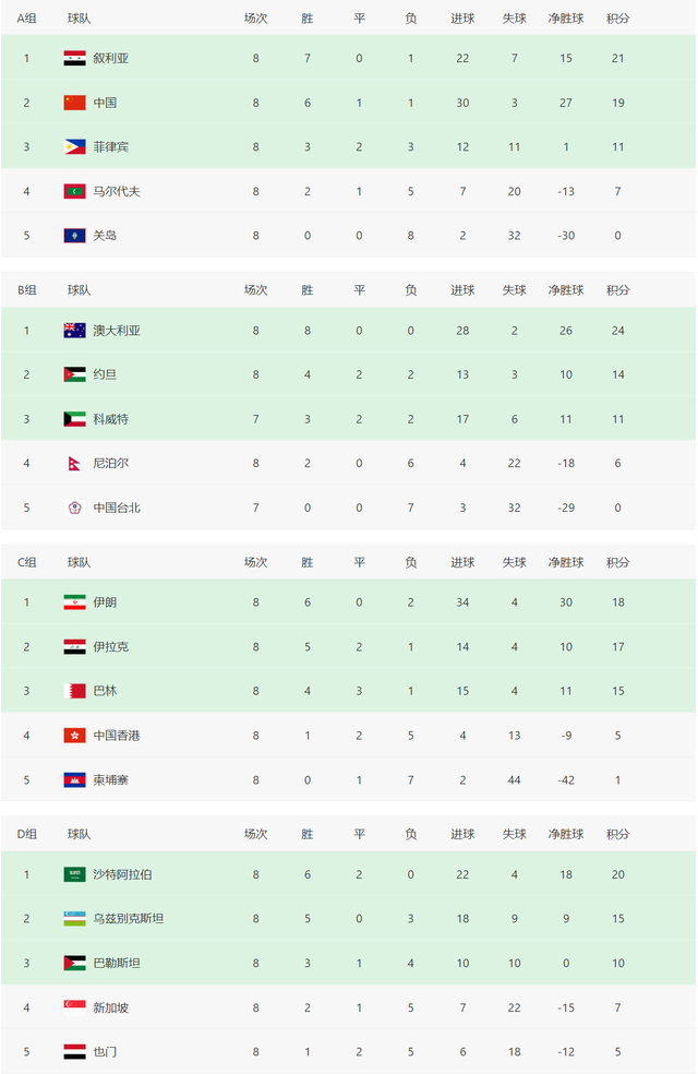 A组晋级球队:叙利亚、中国