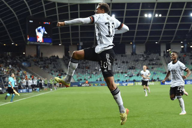 恩梅查虽然在俱乐部发展不顺利,但在德国U21国家队发挥出色,在欧青赛决赛中打入了全场唯一的进球,帮助德国U21击败了葡萄牙U21获得了冠军,同时恩梅查在本届赛事中以4个进球获得金靴。