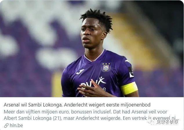 报道称,阿森纳为洛孔加提供了一份1500万欧元含浮动的报价,但安德莱赫特希望转会费的固定部分在2000万欧元左右,此外还有来自德国以及法国的球队对洛孔加很感兴趣。