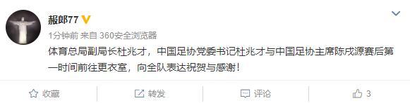 虎扑06月16日讯 据北京青年报记者肖赧透露,战胜叙利亚赛后,杜兆才、陈戌源第一时间来到国足更衣室祝贺球队。