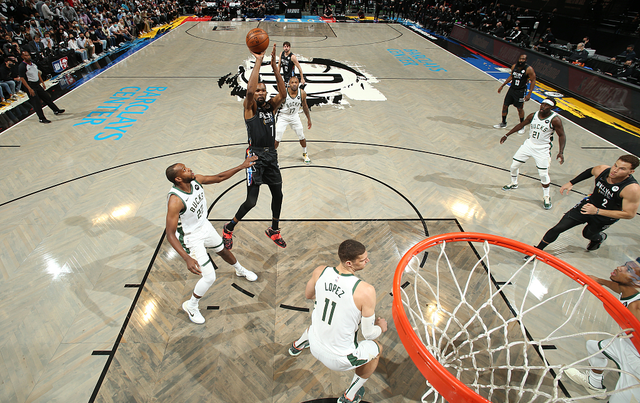 下半场比赛开始,易边再战,篮网队火力全开,疯狂追击,他们单节轰出38分,单节领先雄鹿10分,杜兰特更是在第三节比赛中4投全中,再拿11分6篮板5助攻,三双数据就要达成,杜兰特第三节仍然是打满12分钟,一点没休息!格林同样在第三节三分球三投三中,为篮网队追分做出很很大的贡献。3节战罢他们只落后雄鹿6分。末节之争,杜兰特再次大显神威,各种姿势的三分球都能进,一度带队反超比分!进入第四节下半段,两队比分开始胶着不断,关键时刻,杜兰特24秒压哨顶着防守人超远强行三分干拔,一击致命!篮网掌握着绝对主动权。