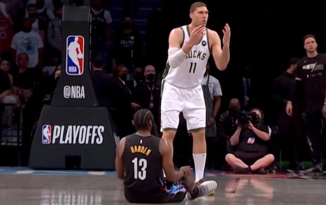 下面我们来回顾一下哈登在最后时刻的一攻一防,比赛进行到决胜局最后阶段,双方几乎拼尽了最后一丝力气,当时比赛剩余1分48秒,双方打成104平局,雄鹿进攻球权,字母哥在左侧低位的位置接球,他此刻选择了并不擅长的背打,更为关键的是字母哥面对的防守球员是哈登,众所周知,增重到了210斤哈登的底盘是十分扎实的,字母哥先是用身体试探推了几次,发现根本推不动,而此时哈登还做出了十分“挑衅”的动作,示意沙梅特不用过来协防,因为米德尔顿站在三分线虎视眈眈,最后的结果证明,哈登的做法是正确的,字母哥发现自己的力量并不足以挑战哈登,随后转身高高跃起跳投,而哈登而反应迅速,同样也是高高跃起伸手进行干扰,最终皮球弹框而出,下一秒篮网主场掌声雷动。毕竟哈登在火箭可是顶防小加索尔的男人,联盟可以背身单打哈登的真没几个。
