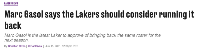 从马克-加索尔角度来看,他认为湖人目前阵容完全有竞争冠军的实力,当然小加索尔能否在接下来这个赛季重返湖人还是未知数。