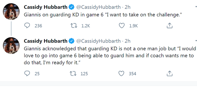 杜兰特与字母哥作为两届MVP得主,以及2019-20赛季的最佳防守球员,字母哥主动请缨防守联盟顶级得分手杜兰特,这意味着G6之战将更有看点。
