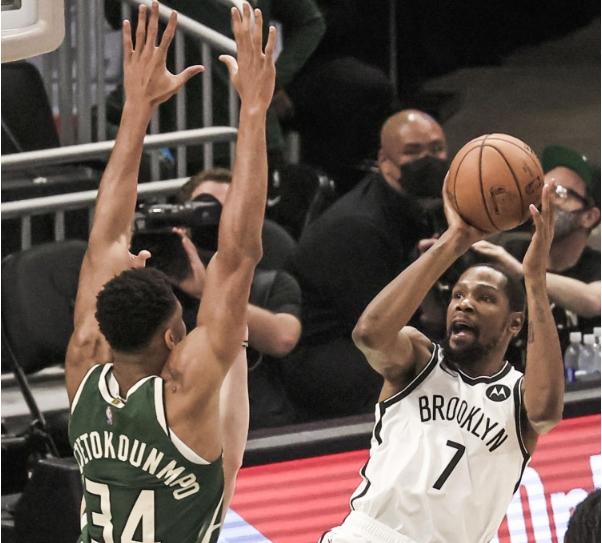 可是在哈登复出之后,杜兰特不需要像第四场比赛一样,一个人持球从后场推进到前场,而是更多可以打无球战术,来获得出手的机会,这样的进攻方式让塔克的防守威慑力大大降低,因此雄鹿队想要在第六场比赛击败篮网队,为自己赢得一个抢七决战的机会,字母哥就应该承担起防守杜兰特的任务。