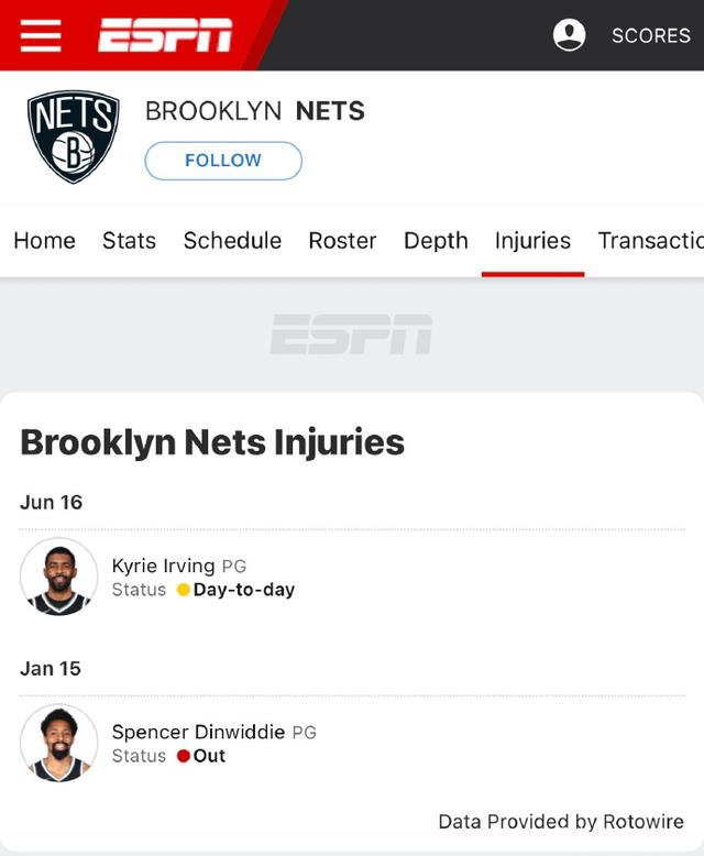 其实若不是篮网有主力受伤,他们已经晋级东部决赛了,从和雄鹿的前两场比赛可以看出,篮网的实力远胜对手,比雄鹿强太多。而在天王山之战中,哈登即便带伤出场,打得并不好,依然能够击败雄鹿,可见两队的差距了。所以对于接下来的G6,篮网的三巨头能否合体成为关键,若三巨头能够合体出战,那么雄鹿基本难以取胜,很大可能被淘汰出局。而ESPN更新了欧文的出战状态,他的状态变成了每日观察。