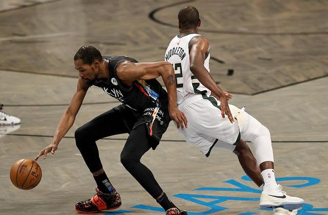 阵容实力更加完善的雄鹿队果然和预想的一样,开场进攻气势如虹而势不可挡,前六分多钟里打出了12-2的进攻高潮,将篮网队防得仅有杜兰特命中一球。首节结束后,雄鹿队已经领先了对手14分之多;哈登则是半场一分未得,并没有能够展现昔日MVP和得分王的强大实力,球队以16分的差距落后雄鹿步入下半场。