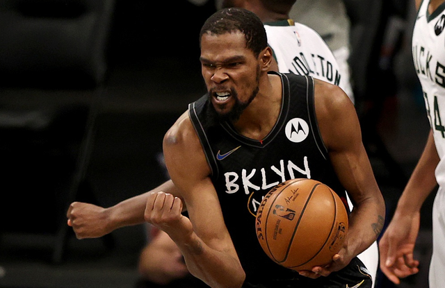 NBA季后赛激战正酣,东部分区半决赛,天王山之战中,篮网完成大逆转,114-108击败了雄鹿,杜兰特轰下49分17篮板10助攻的数据,用杨毅的话说,简单点,杜兰特牛!确实,杜兰特的表现已经超越常人认知,而当全场哨响时,杜兰特愤怒握着拳头宣泄的时候,所有人都被他的表现折服。相比之下,哈登数据表现真的不好,全场10中1,拿到5分6篮板8助攻。从43秒到46分钟,为杜兰特解围!字母哥认输吧,这才是兄弟篮球。