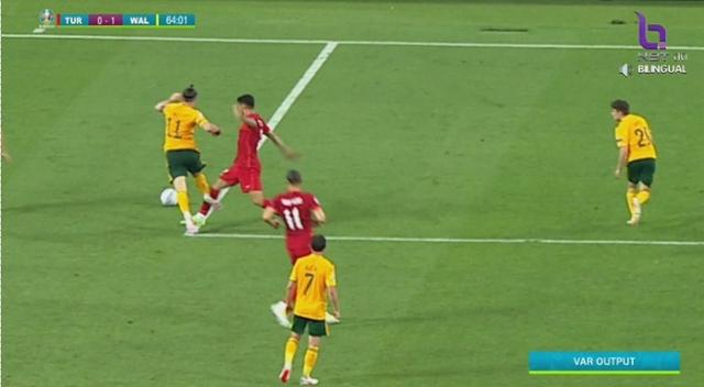直播吧6月17日讯 土耳其vs威尔士第60分钟,贝尔带球突破被塞里克放倒,裁判判罚点球!这一犯规发生在禁区线上,土耳其球员上前申诉,但裁判非常坚决。