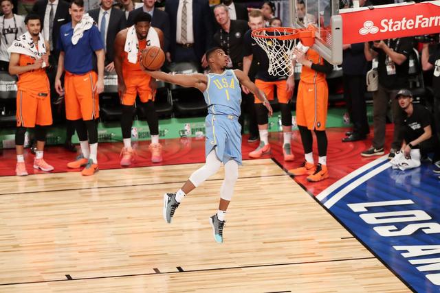 得分15.2分,排在同届第3位;助攻5.2次,排在同届第2位,如果说米切尔是得分机器的话,那丹尼斯就是进攻发动机,而且不光能组织进攻,他的篮板能力也非常突出,是这届新秀中,第2位拿到三双,同时也是唯一一个场均20+10+10的三双,在丹尼斯的身上,你甚至能看到场均三双的潜质,新秀赛季结束后,几乎所有人都他当成是下一个韦少。