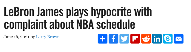 例如拉里-布朗体育就在一篇文章中直言勒布朗-詹姆斯的言论是伪君子式的“马后炮”,因为詹姆斯现在确实能够是“告诉过联盟”这句话,但实际上他并没有任何实际举动去推动这件事,简单来说詹姆斯也只是动动嘴并且没有任何实际行动。
