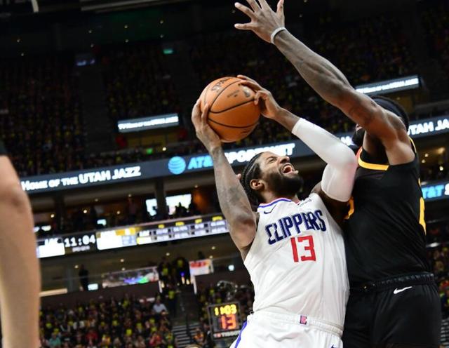 爵士队回到主场,开场3分手感火热, 半场飚中17记3分,将常规赛第一三分大队的本色尽显无遗,但尽管如此,快船并没有被对手的3分雨给打花,因为乔治很好地承担起领袖责任,他在上半场独砍22分8篮板,帮助快船队紧咬比分,半场仅仅落后对手5分。