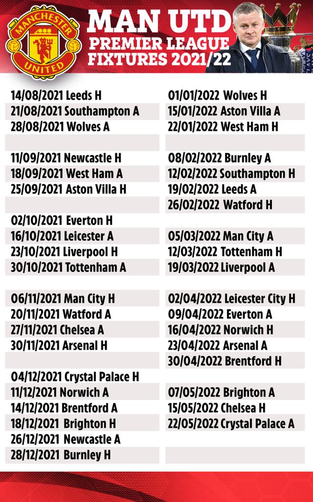 曼联在8月和9月赛程较为轻松,打完利兹联后,8月的另外两场比赛分别是做客南安普顿和狼队,9月则首先主场对纽卡斯尔,随后做客西汉姆,再重返主场迎战维拉。