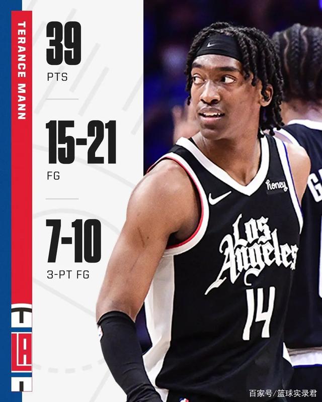 没有伦纳德,快船全民皆兵,其中曼恩的表现无疑最让人惊艳,全场下来,曼恩一共出战36分钟,21投15中,三分10中7,拿下了39分,关键追分的第三节,曼恩单节拿下了20分。