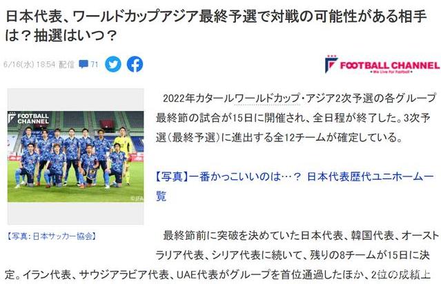 接着我们再来看日媒《Football Channel》的报道,消息里直接点名韩国和澳大利亚这2支球队,不过由于每一档的2支球队都会分成不同小组,这意味着日媒仅感受到第2档球队的威胁,后面4档的球队完全就没有放在眼里。