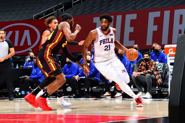 上一场的天王山之战,恩比德和小库里内外双星闪耀,两人分别贡献了37分和36分,而76人全队也仅有他们二人拿到了两位数的得分,无奈最终在一度领先26分的情况下被逆转。今天来到亚特兰大进行的这场生死对决中,恩比德和小库里再度成为了球队的大腿。