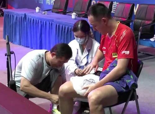 于是乎,老徐抢拉半出台把手指给磕了,当场流血叫了医疗暂停。结局当然是别扭地输给了许昕。