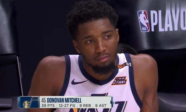 这场比赛里,米切尔带伤出战,交出了27投12中,三分15中9,罚球9中6,砍下39分9篮板9助攻的大号准三双表现,并且在比赛中还两度差点再次受伤,让人看得忍不住担心他是否会因此加重伤势。但那股不服输的精神,让他咬着牙坚持比赛,但遗憾的是,他最终没能创造奇迹,没能力挽狂澜,即使他打出了一份几乎是准40+三双的数据,依然没能帮助球队赢下这场比赛,依然没能将比赛带回犹他州。