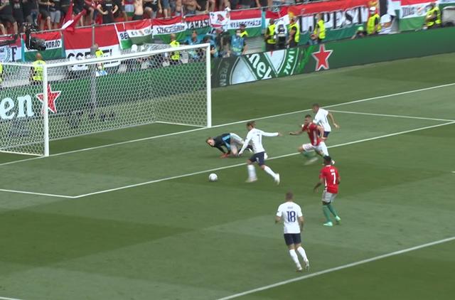 比赛伊始,法国队先来一记“下马威”。第14分钟,姆巴佩分球,本泽马禁区前沿劲射,古拉西奇倒地将球封出,格列兹曼补射,面对距离球门6米的绝对空门机会,他的射门又没力量又被角度,一脚将皮球送到了古拉西奇舒展的双臂之下。
