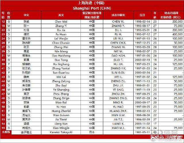 海港名单共26名球员,以一线队替补球员+U23球员为主体组成的全华班参赛,陈威、杜佳、傅欢、张卫、胡靖航、魏来等在列。球队以日本教练金子隆之挂帅,将于6月23日(下周三)北京时间22:00与菲律宾球队伊洛伊洛卡雅进行附加赛,比赛地点在泰国曼谷的巴吞他尼体育场。