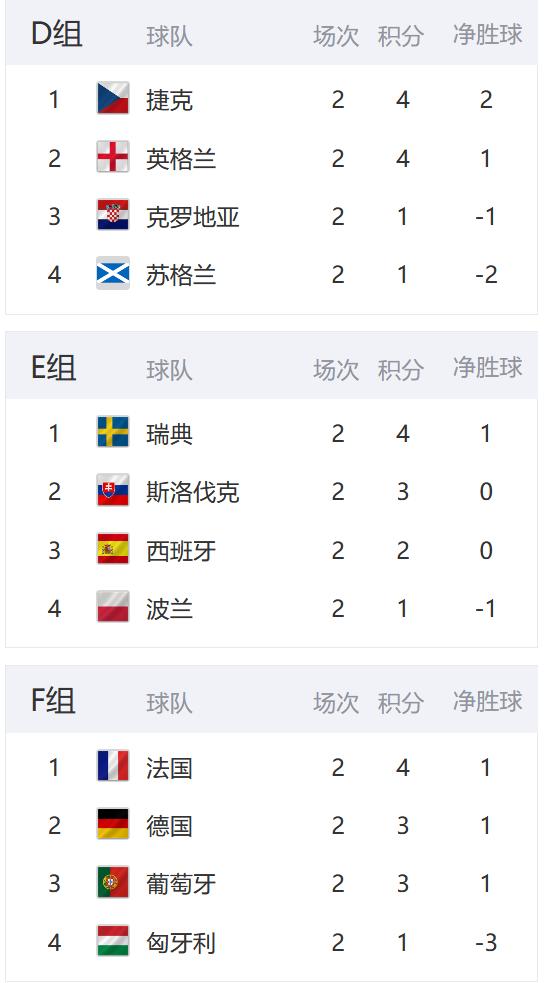 D组的局面是捷克和英格兰末轮打平一起出线,而且英格兰似乎并不太希望拿到小组第一,末战赢球欲望并不大。克罗地亚没有退路,只有击败苏格兰,他们才能掌握出线主动权,一旦不赢球,就大概率出局。E组陷入了连环套,四支球队都有机会,西班牙末轮对阵斯洛伐克,他们前两轮只是拿到2分,没了退路,波兰对阵瑞典,同样还有机会,这个小组比较复杂,西班牙还真有出局的可能。
