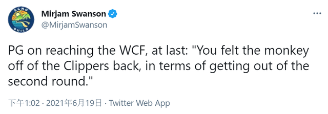 同时乔治也坦言,随着球队打进西部决赛,感觉所有人都如释重负。