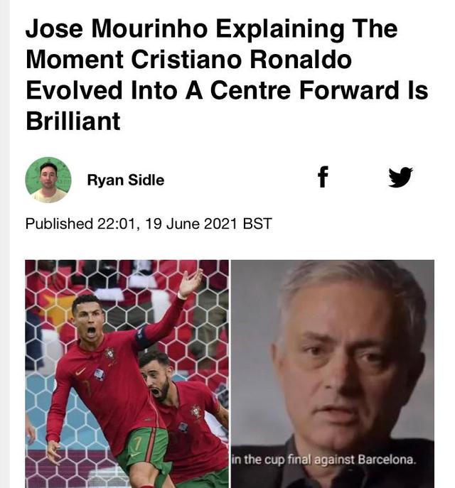 除了速度之外,C罗的敏锐嗅觉也同样让外界震惊。C罗本场打入一球后,世界杯+欧洲杯进球数达到19球,追平克洛泽;国家队总进球数达到107球,距离阿里代伊只有2球差距。对于C罗的高效进球率,英国媒体《体育圣经》分析说,C罗能够取得现在的成就,要特别感谢穆里尼奥,正是后者让C罗从边锋转为9号球员,才有了C罗的进球如麻。可以说,没有穆里尼奥的改造,就没有C罗如今的转型成功。