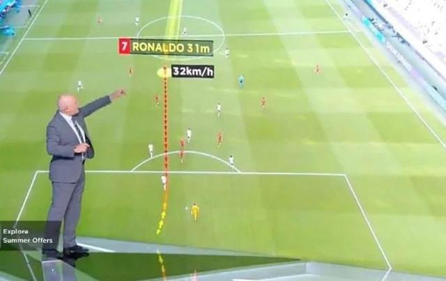 其中,C罗为葡萄牙队首开纪录的进球,震惊了世界。贝因体育分析称,C罗在短短14秒时间里跑完了97米,时速为32㎞每小时,这还是在他由守转攻折返跑+31米放慢速度的情况下取得的数据。而姆巴佩创造的纪录36㎞每小时则是在全力冲刺情况下完成,飞人博尔特巅峰状态为37.85㎞每小时。考虑到C罗已经36岁了,同龄情况下,就连博尔特也承认,不一定能跑过C罗。