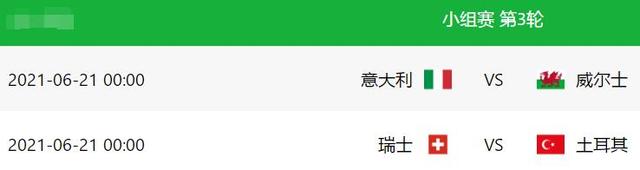 而瑞士和土耳其则将上演生死战,瑞士获胜将大概率出线,但土耳其若小胜,两队或携手出局。当然,因为威尔士之前与瑞士战成1-1平,所以倘若明晨威尔士大比分输给意大利,而瑞士又击败土耳其,威尔士也可能因获得小组第3而处于“待定”位置,有可能小组出局。如果明晨意大利和瑞士只是1球小胜对手,则威尔士因净胜球的优势位居小组第2,也就是说,威尔士大概率将小组出线!
