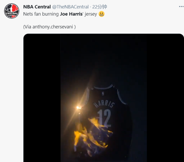 值得一提的是,烧球衣是NBA的一个“保留节目”,不过经常出现在休赛期,一些大牌巨星离开母队的时刻。当年,詹姆斯离开骑士,保罗乔治离开步行者,保罗乔治离开雷霆时,都有球迷干这样的事。不过这次乔哈里斯并不是巨星,而且他下赛季还将效力篮网,这样的行为,只能感慨他们真有钱。