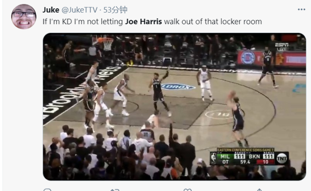 球迷纷纷为KD鸣不平,有球迷表示:“如果我是KD,我不会让乔哈走着离开更衣室。”还有很多网友引用一些搞怪的趣味图,来嘲讽乔哈里斯。