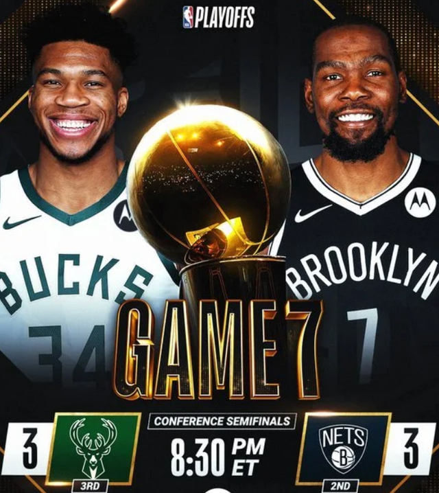 杜兰特砍下48分,30投17中,3分10中4,另外还有8篮板6助攻的贡献,单场48分也创造了NBA抢七历史纪录。哈登3分10中2,得到22分9助攻7篮板,字母哥砍下38分10篮板,无疑,这是最经典的抢七大战之一。显然幸运女神已经站到篮网这边。