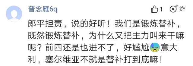 一名球迷怒斥道:“郎平担责,说的好听!我们是锻炼替补,既然锻炼替补,为什么又把主力叫来干嘛呢?前四还是也进不了,好尴尬!意大利、塞尔维亚不就是替补打到底嘛!”