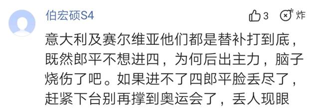 还有球迷痛批郎平时指出:“意大利及赛尔维亚他们都是替补打到底,既然郎平不想进四,为何后出主力,脑子烧伤了吧。如果进不了四郎平脸丢尽了,赶紧下台别再撑到奥运会了,丢人现眼!”
