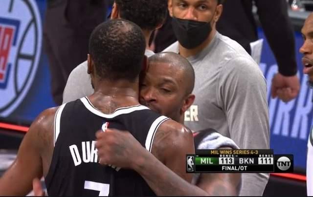 虽然塔克和杜兰特在比赛中多次发生口角,甚至都有嘴对嘴的表现,但是仍然不妨碍两人互相尊重,赛后塔克和杜兰特紧紧的拥抱在了一起,两人交流了很久,也算是冰释前嫌了,重归于好。在NBA中,没有绝对的敌人,詹姆斯和格林在赛场上打得死去活来,结果他们是同一个经纪人,而且二人也是总是互送祝福,因此杜兰特和塔克也没有什么恩怨,只是各为其主罢了。赛后两人也是给予了对方最大的尊重,生活大于篮球,他们二人其实还是非常不错的朋友,球迷们也不要猜测他们二人的关系。