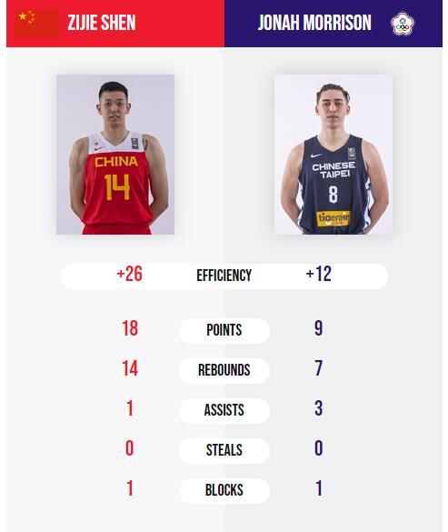 虽然周鹏队长拿下了全队最高的21分但他的正负值不如沈梓捷,而且沈梓捷是大号两双的数据18分14篮板,FIBA国际篮联也认可沈梓捷是这场比赛中国男篮发挥最出色的运动员。