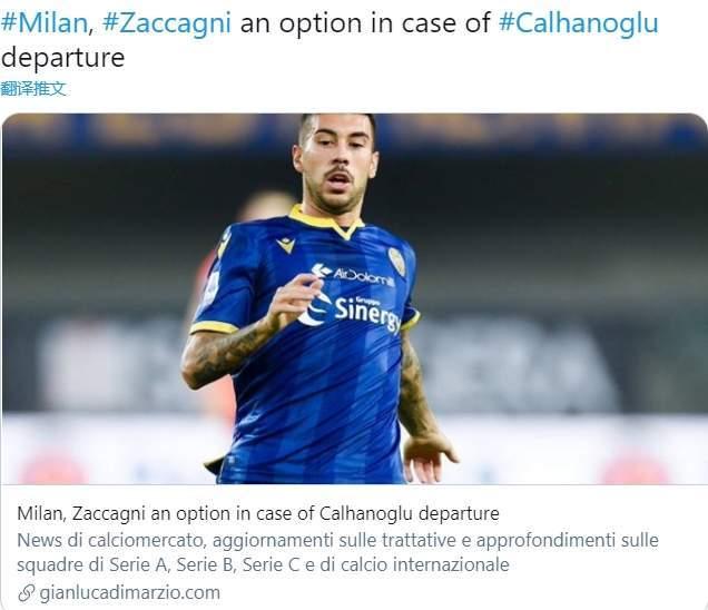 迪马济奥消息,为了防止恰尔汉奥卢离队,米兰已经锁定了替代目标,那就是马蒂亚-扎卡尼。