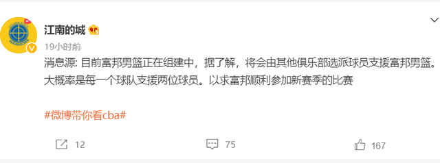 近日CBA股东大会已经结束,下赛季各球队要全华班出战已经基本确定,然后就是新赛季宁波富邦即将重新组建,组建方式将是由其他俱乐部选派球员支援组队。不久之前富邦男篮社交账号已经获得官方认证,加上近期的消息,新赛季富邦进入联盟,CBA重新回到20支参赛队基本已成定论。