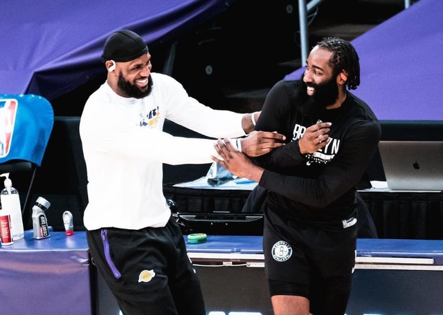 看看老王者詹姆斯。无论是热火时期,还是骑士时期,詹姆斯建队也都是三巨头模式,但如今的篮网也是三巨头模式,而且篮网三巨头丝毫不逊色热火三巨头!还记得18年夏天,欧文已经离开骑士,乐福在季后赛表现迷离,詹姆斯首轮大战抢七带队击败步行者,次轮横扫猛龙,东决也是一度0-2落后凯尔特人,一度2-3落后凯尔特人,但詹姆斯抢七大战打满48分钟,24中12,拿到35分15篮板9助攻,带队杀入总决赛,赛后詹姆斯累瘫在颁奖台。原来在篮网这里,进东决都如此困难,而詹姆斯,曾经连续8年成为东部王者,以东部冠军的身份闯入总决赛,凭什么他可以,到了篮网这里就不行?
