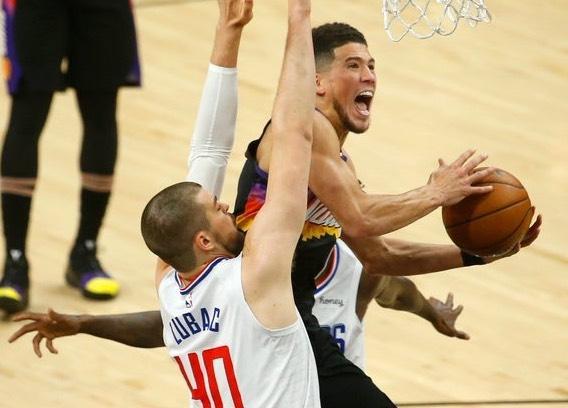 NBA西部决赛正式开打,太阳队坐镇主场迎战快船队,受困于安全协议与伤病问题,两队的核心保罗与伦纳德悉数缺席本场比赛。