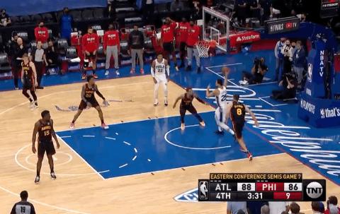 比赛来到第四节关键时刻,费城落后4分。此时西蒙斯低位背打,已经转身抹过,几乎面对空篮。然而这球,西蒙斯却放弃上篮,而是将球交给同在篮下的塞布尔。塞布尔随后被犯规,两罚一中。