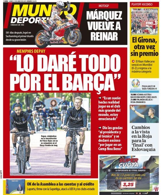 1、“我会为巴萨奉献全部”,荷兰前锋德佩接受了媒体的采访,他表示:“为世界上最大的俱乐部踢球是梦想成真的一刻,我非常激动。感谢主席和主教练,我憧憬在球迷满座的诺坎普比赛。”