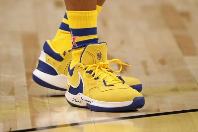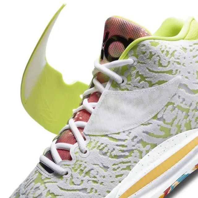 圆润的鞋身、臃肿的设计,这双KD14在杜兰特修长的腿下甚至有些许突兀,在我的印象中这可能是KD系列最奇怪的一次视觉观感体验。