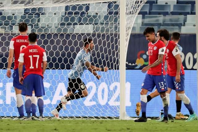 最终,智利1-1战平乌拉圭。前者凭借先赛的优势超越阿根廷来到A组头名,乌拉圭则拿到本届美洲杯的第一个积分,仍然排在倒数第二位,全靠鱼腩玻利维亚垫底遮羞。