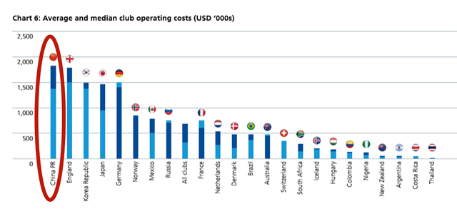 2021年6月初,国际足联发布了“全球女足商业报告”,图表显示的是“全球女足联赛俱乐部运营的平均支出”,出人意料的是,中国女足联赛俱乐部以接近200万美元的支出,一举成为了是全球“最烧钱的女足俱乐部”。