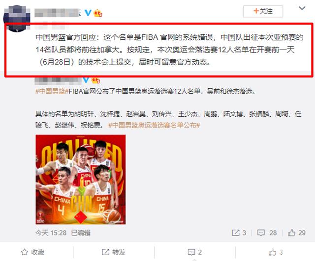 对此,中国男篮也是及时回应:“这个名单是FIBA 官网的系统错误,中国队出征本次亚预赛的14名队员都将前往加拿大。按规定,本次奥运会落选赛12人名单在开赛前一天(6月28日)的技术会上提交,届时可留意官方动态。”这样的说法,则肃清了传言,回应了真相。那就是,这是官网的系统问题,如此一来,对球迷们来说,也是知道真相了,也就没有必要纠结谁被淘汰的问题了。这样的做法,的确是眼下可取的最好做法。